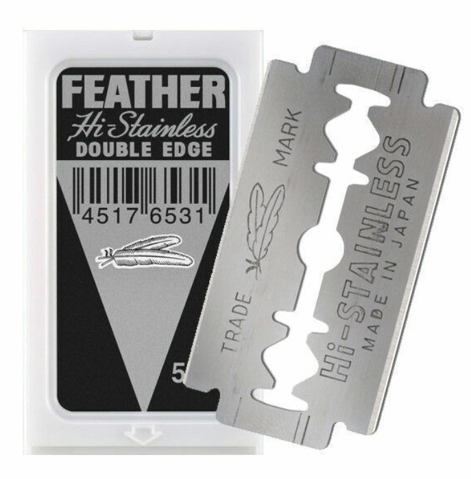 Experience the perfection of Feather Hi-Stainless Platinum Coated Blade - a pinnacle of Japanese craftsmanship for Ministry of Shave's Double Edge Razor. Unmatched sharpness, smoothness, and durability for your grooming pleasure.